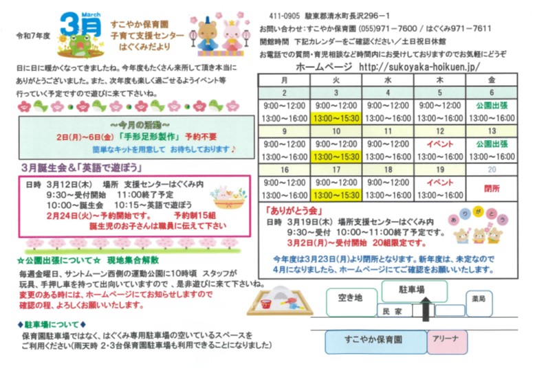 支援センターはぐくみ3月の予定